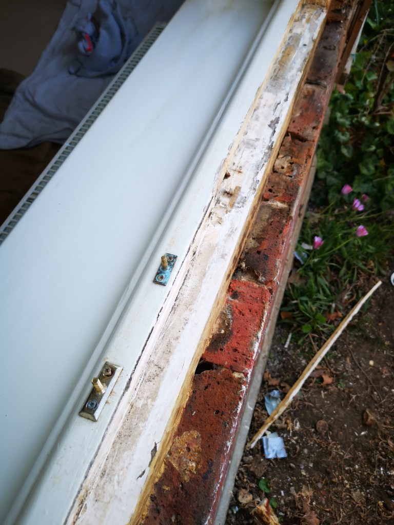After the removal of the old windows and prior to the installation of the new replacements the cills in part needed to be replaced. It is usually the external component of the cill that needs to be replaced as this is the bit that is exposed to the elements.