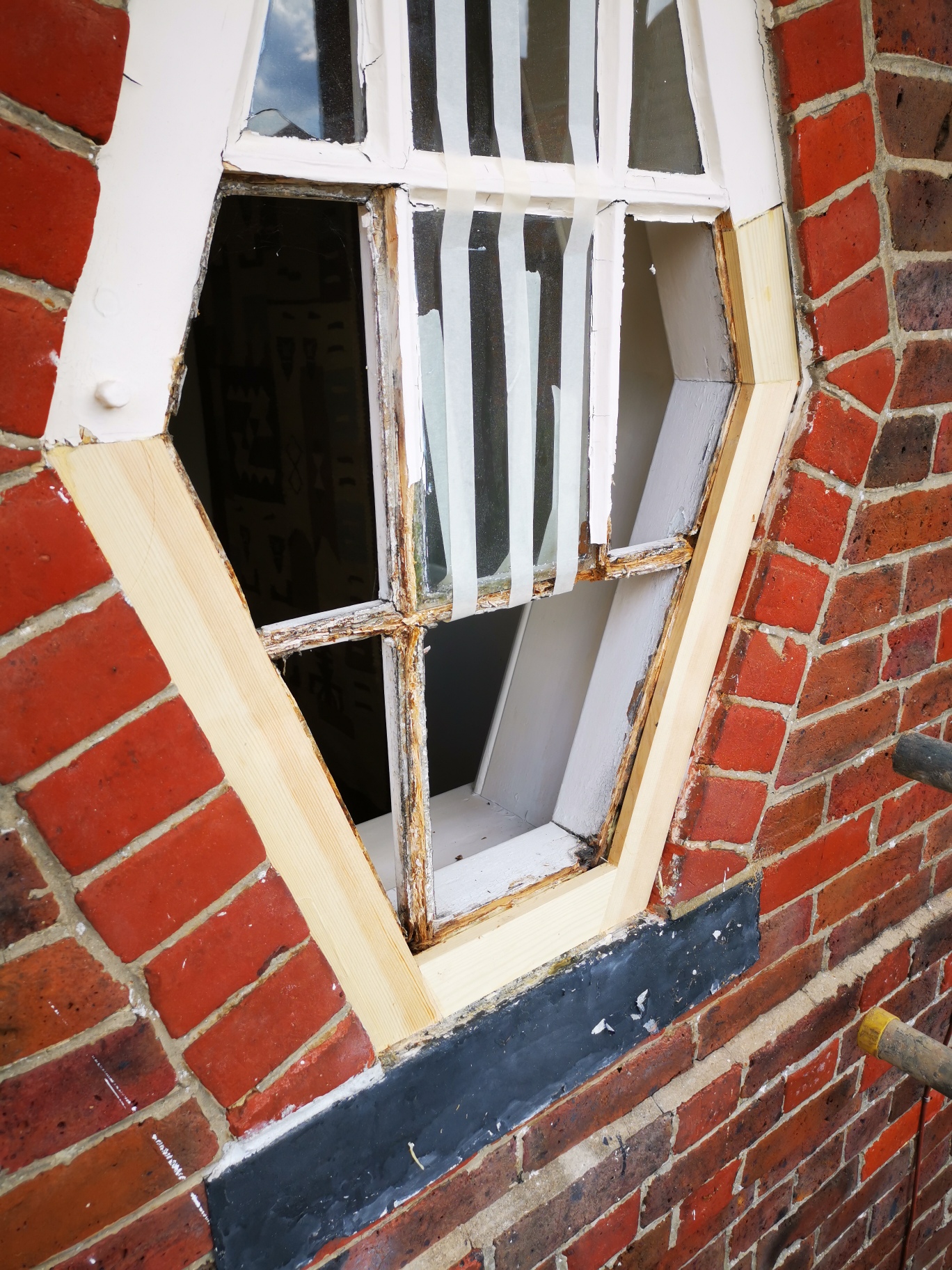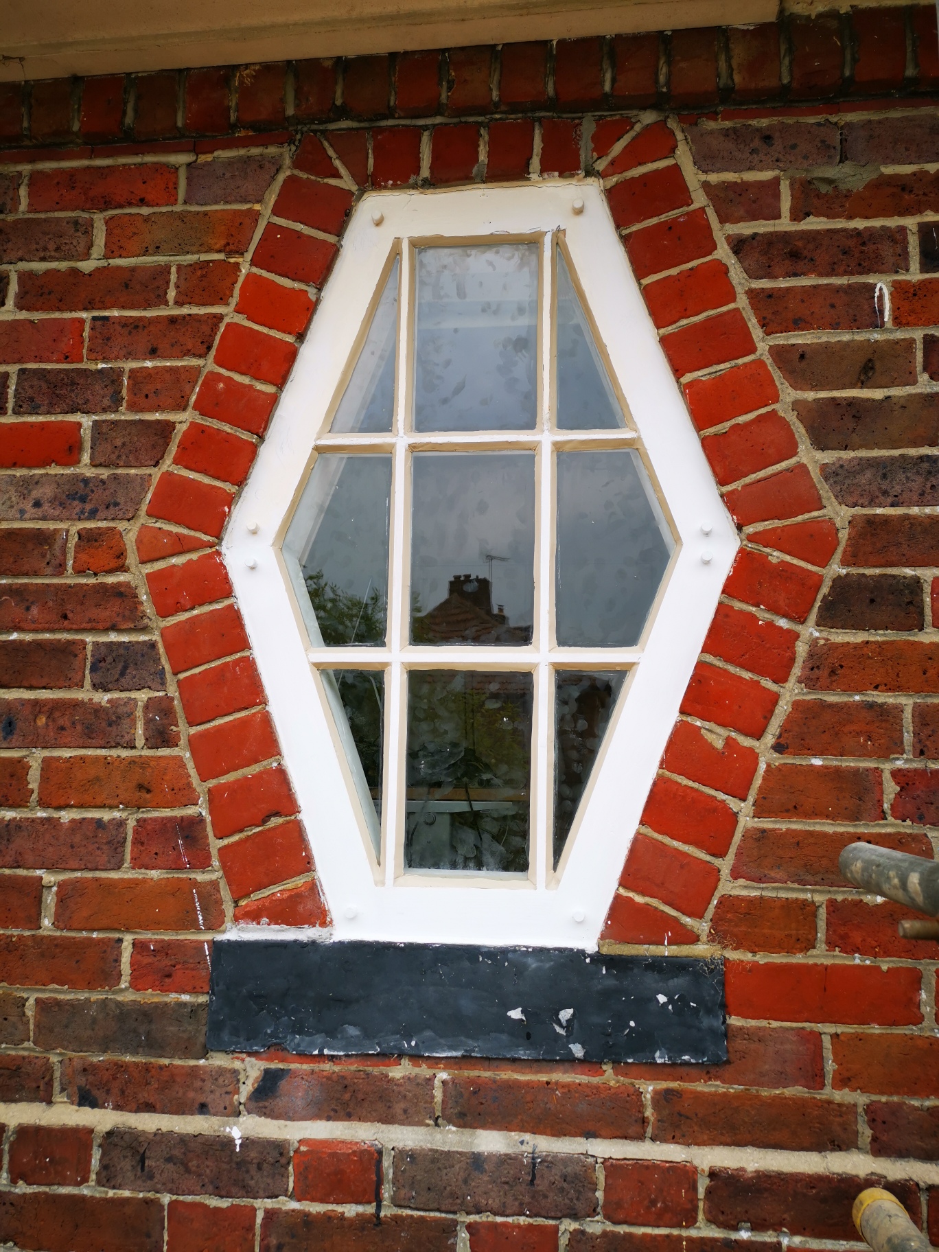 The cills have a 4.5 degree fall from window to edge. Rot can also travel up to effect frames as was the case with the octagonal window. The glazing beads had to be removed as they had deteriorated. Broken putty being the cause of the rot in the glazing